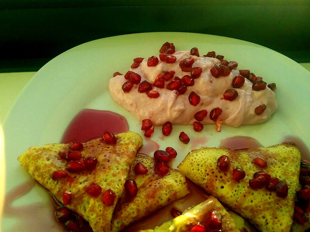 Numa tigela juntar os ingredientes todos e triturar com a varinha mágica. Pré aquecer uma frigideira a lume 6, e fazer os crepes.