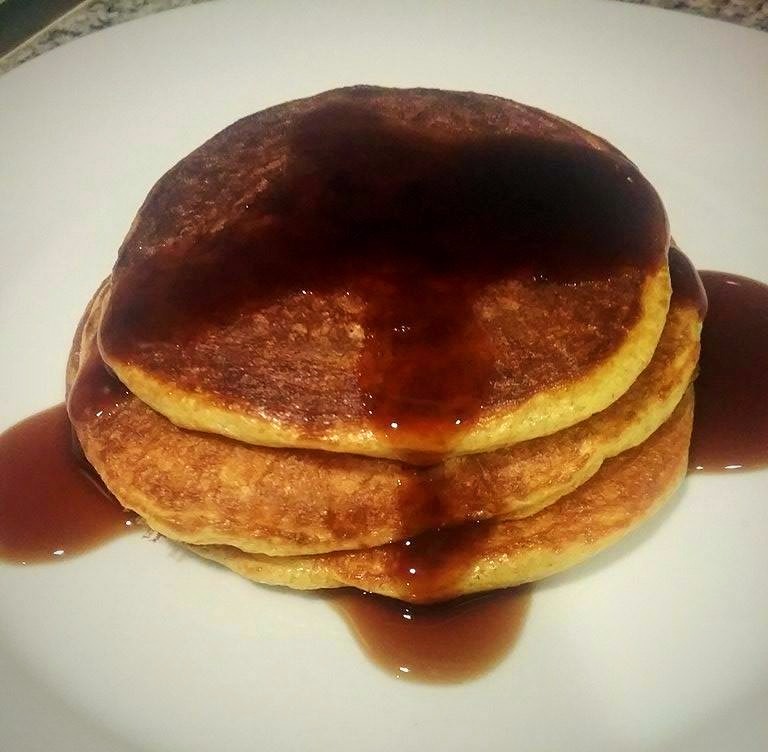 Misturar os ingredientes todos numa tigela. Pré aquecer uma frigideira a lume 6 com ou sem óleo de coco (fica ao critério de cada um, e se a frigideira for de qualidade não é necessário adicionar nenhuma gordura). E fazer as panquecas do tamanho que preferir.